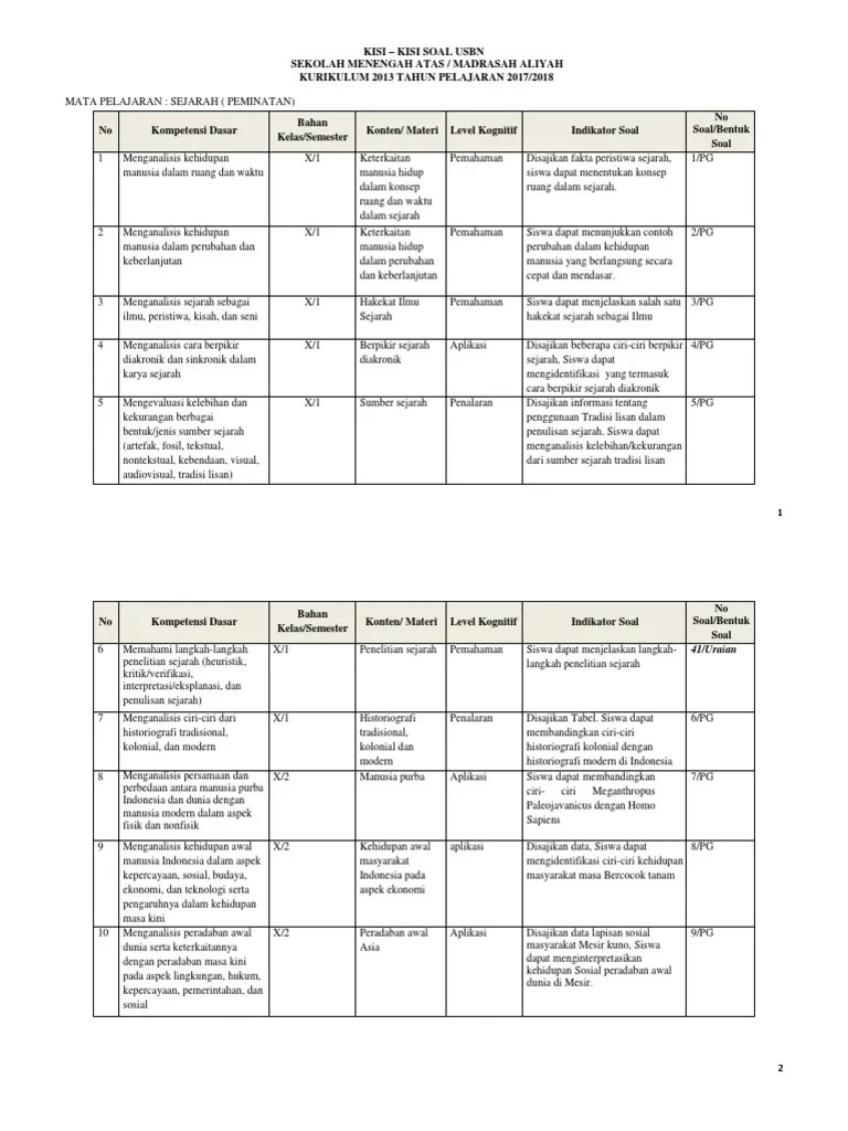 Kisi Kisi Sejarah Peminatan Kelas 10 - Kisi Kisi Penulisan Soal Penilaian Akhir Semester 1 Peristiwa Sejarah Tentang Manusia Di Masa Lalu Untuk Pdf Document - Berikut soal latiha uas pas sejarah kelas 10 sma semester ganjil soal pilihan ganda essay.